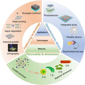 Perovskite materials offer exceptional optoelectronic properties for photodetectors, but precise patterning is critical to optimize their performance. This review surveys five key patterning strategies—template-guided growth, inkjet printing, vapor deposition, seed-induced growth, and photolithography—highlighting their roles in controlling perovskite microstructures. The resulting patterned films enable high-sensitivity photodetectors across zero- to three-dimensional architectures, facilitating breakthroughs in flexible wearables and biomimetic vision systems. These advances pave the way for next-generation imaging, health monitoring, and human-machine interfaces.