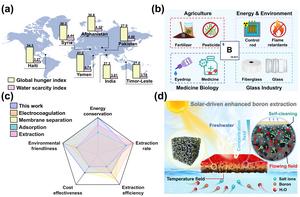 28-Nov-2025 太阳能新突破:从海水中同步获取淡水和硼 Science China Press Peer-Reviewed Publication 来自中国的研究人员开发了一种太阳能驱动的多场协同策略,用于从海水中同步获取淡水和硼。创新的(MXene-MgO)@海藻酸钠(SA)复合凝胶(MMS)实现了高蒸发率和硼吸附能力,为解决全球水和食物短缺问题提供了可持续的解决方案。 Journal Science Bulletin