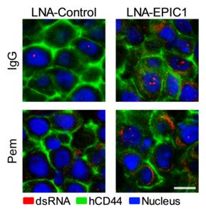 Scientists have identified how an RNA named EPIC1 endows tumors with the ability to resist immunotherapies – and show that targeting the RNA in cells and mice can potentiate checkpoint blockade and slow tumor growth. Despite their clinical success, immunotherapies such as PD-1 blockade still face many obstacles that impede their effectiveness. Many patients aren’t eligible for immunotherapy, and those who are eligible don’t always respond to treatment. Furthermore, tumors often adapt over time to resist these treatments, leading to high relapse rates and poor outcomes. Scientists are now searching for proteins and other molecules that enable tumors to resist treatments, theorizing that targeting such factors could boost the cancer-killing power of immunotherapy. In this study, Dhamotharan Pattarayan and colleagues identified one such target in EPIC1, a long noncoding RNA that contributes to tumor evasion. They examined human breast cancer cells and found that EPIC1 restrained immunity against tumor cells by suppressing type I interferon signaling and the accumulation of double-stranded RNAs, which normally facilitate antitumor responses, in the tumor cells. EPIC1 orchestrated these effects by inhibiting the activation of various types of retroelements, which are DNA sequences that can move around within genomes and produce double-stranded RNAs when activated. Reducing EPIC1 levels restored double-stranded RNA production in cancer cells and revived antitumor immune responses. Pattarayan et al. also showed that oligonucleotides that target EPIC1 for degradation slowed the growth of triple-negative breast cancer tumors in mice and boosted the infiltration of T cells and macrophages into tumors. Knocking down EPIC1 also sensitized tumor-bearing mice to treatment with the approved PD-1 inhibitor pembrolizumab, highlighting EPIC1’s viability as a potential therapeutic target. For reporters interested in trends, an August study in Science Immunology revealed how inhibiting the cell cycle protein BUB1 sensitizes tumors to radiation therapy and immunotherapy by activating innate immunity: www.science.org/doi/10.1126/sciimmunol.adq2055
